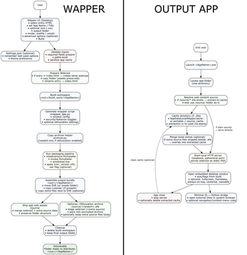 Vs Electron / NW.js: Electron-style apps usually ship a full browser runtime, which often means much larger output sizes (often 100MB+) and a heavier setup/workflow. Wapper focuses on a lightweight wrapper and a fast, click-to-build experience.